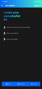 playlist you can actually add news videos of your own choice, Record your personal opinion on them(they are hosted only for a month on the platform) and share your playlist which can be viewed by other users of the app. It will broadcast the news and you can freely express your opinion about the current news as per your wish.